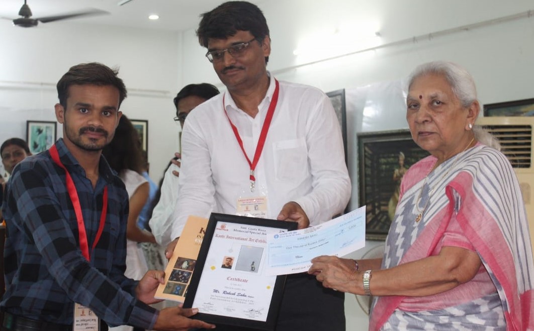 श्री राकेश कुमार साहू ने चित्र में गरीबी और भुखमरी जैसी गंभीर समस्या को उकेर लोगों का ध्यान आकृष्ट किया। इससे स्पेशल पुरस्कार एवं सम्मान हेतु उनका चयन किया गया। राज्यपाल श्रीमती आनंदीबेन पटेल द्वारा 22 जून को उद्घाटित यह प्रदर्शनी 23 जून तक लोगों के अवलोकन के लिए खुली रहेगी। इसमें देश-विदेश के कई कलाकारों की कलाकृतियों की प्रदर्शनी लगाई गई है। उल्लेखनीय है कि श्री राकेश कुमार साहू समाज कल्याण विभाग द्वारा रायपुर में संचालित शासकीय दिव्यांग महाविद्यालय के बैचलर ऑफ फाइन आर्ट्स के विद्यार्थी हैं। महाविद्यालय के कुल 9 दिव्यांग विद्यार्थी चित्र प्रदर्शनी हेतु चयनित हुए हैं। इनमें श्री नवीन वर्मा, श्री प्रणीत सरकार, श्री शिवलाल पुडो, श्री धनेश पटेल, श्री पारस वर्मा, श्री त्रिलोक ठाकुर, श्री प्रताप गागड़े, श्री लिंगेश्वर पटेल, श्री राकेश साहू, शामिल हैं।