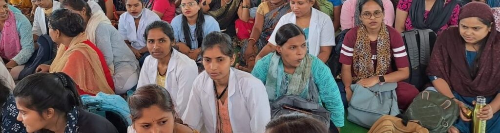 In intensifying the strike, thousands of health employees including staff nurses, ward-boys, stretcher bearers, pharmacists, radiographers, lab- technologists, OT Assistants, employees of advanced cardiac institute and all other cadre stafffrom Dr BR Ambedkar Memorial Hospital, DKS Hospital, District Hospital, Community Health Centres, Primary Health Centres, Sub-Health Centres observed the strike.