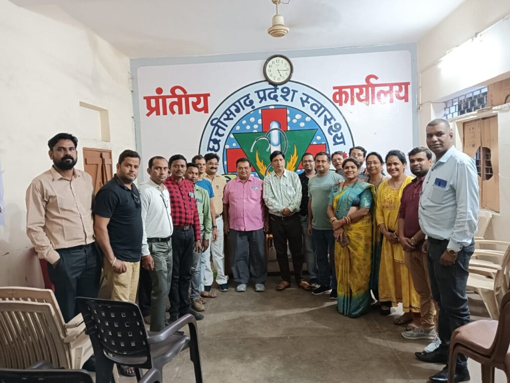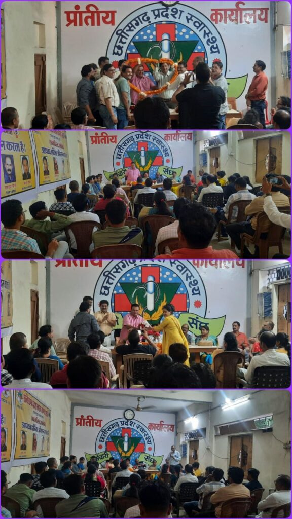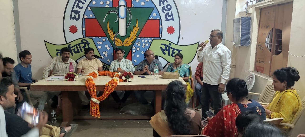 छत्तीसगढ़ प्रदेश स्वस्थ्य कर्मचारी संघ के एनएचएम प्रकोष्ठ का विचार चिंतन मंथन बैठक प्रांतीय कार्यालय रायपुर में माननीय श्री आलोक मिश्रा प्रांताध्यक्ष के मुख्य अतिथि एवम माननीय श्री ओ पी शर्मा संरक्षक, श्री रविंद्र तिवारी कार्यकारी प्रांताध्यक्ष, श्री अश्वनी गुर्देकेर महामंत्री श्री एस पी देवांगन उप प्रांताध्यक्ष, श्री आर पी यादव, श्री चेतन सिन्हा,श्री अनिल गढ़ेवाल एनएचएम प्रकोष्ट संयोजक , विजय निर्मलकर प्रकोष्ट महामंत्री, श्री मजीद खान एड्स प्रकोष्ठ संयोजक के विशिष्ट अथिति में सम्पन्न में सम्पन्न हुआ। मुख्य अथिति के आसंदी से माननीय आलोक मिश्रा ने सविदा नीति को शाशन की दोहरी नीति बताया। साथ ही सविदा कर्मचारियों को नियमितीकरण कर इस दोहरा नीति को बंद करने की बात कही। महोदय ने सविदा कर्मचारियों को विश्वास दिलाया है कि हम नियमित कर्मचारी संघ सविदा कर्मचारियों के साथ मे खड़े है और उनकी मांगों को शाशन स्तर तक पहुच कर रहेंगे। और किसी कर्मचारी की छटनी नही करेंगे। माननीय श्री ओ पी शर्मा ने लोगो को संबोधित किया और बताया कि हम सविदा कर्मचारियों के साथ लगातार कंघे से कंधे मिलाकर चल रहे है और सभी कर्मचारी एक है श्री अनिल गढ़े वाल ने अपने उद्बोधन में सविदा कर्मचारी जो कोरोना काल मे अपनी जान जोखिम में डालकर कार्य किया उसके बाद भी शासन ने उन्हें नियमितीकरण का सौगात नही दिया और न ही वेतन बढ़ोतरी की। अनिल गढ़ेवाल जी ने सविदा कर्मचारियों के प्रति वर्ष सेवा समाप्ति पर भी चिंता व्यक्त कर कहा कि अधिकारी की मनमानी और देष पूर्णभावना से सविदा कर्मचारी आज भी अपनी नौकरी खोते जा रहे है जो कि गलत है इसमे शुधार होना चाहिए।