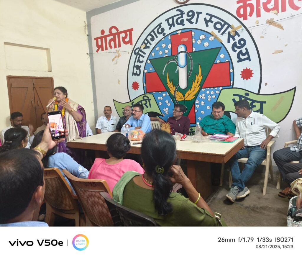आज दिनांक 21/08/2025 को छत्तीसगढ़ प्रदेश स्वास्थ्य कर्मचारी संघ के प्रांतीय कार्यालय रायपुर में संघ की महासमिति की बैठक हुई जिसमें विभिन्न जिलों के जिलाध्यक्ष, ब्लाक अध्यक्ष तथा सैकड़ों कर्मचारी उपस्थित थे l जिसमें महासमुंद जिला अध्यक्ष भानु डडसेना, दुर्ग अध्यक्ष सत्येन्द्र गुप्ता, गौरेला से राहुल जयसवाल और बस्तर / कांकेर से अध्यक्ष चंद्रहास नाग द्वारा श्री अनिल पाण्डेय का नाम प्रांताध्यक्ष पद के लिए प्रस्तावित किया उक्त प्रस्ताव का समर्थन गरियाबंद जिलाध्यक्ष नितेश सिन्हा, धमतरी जिलाध्यक्ष संजय नारंग, सूरजपुर जिलाध्यक्ष इन्द्रसेन विश्वकर्मा, कोंडागांव जिलाध्यक्ष अनिल वैद, राजनंदगांव जिलाध्यक्ष लाभेश पगारे द्वारा किया गया l अन्य कोई प्रस्ताव नहीं आने पर श्री अनिल पाण्डेय को सर्वसम्मति से संघ का प्रांताध्यक्ष निर्विरोध निर्वाचित किया गया l श्री अनिल पाण्डेय स्वास्थ्य पर्यवेक्षक के पद पर सामुदायिक स्वास्थ्य केंद्र धौरपुर जिला सरगुजा में पदस्थ हैं l संघ द्वारा उक्त निर्वाचन के लिए शिक्षक कांग्रेस के प्रांताध्यक्ष श्री अनिल शुक्ला को निर्वाचन अधिकारी एवं श्री डी के दानी को सहायक अधिकारी नियुक्त किया गया था इस तरह यह निर्वाचन उनके द्वारा संपन्न कराया गया l