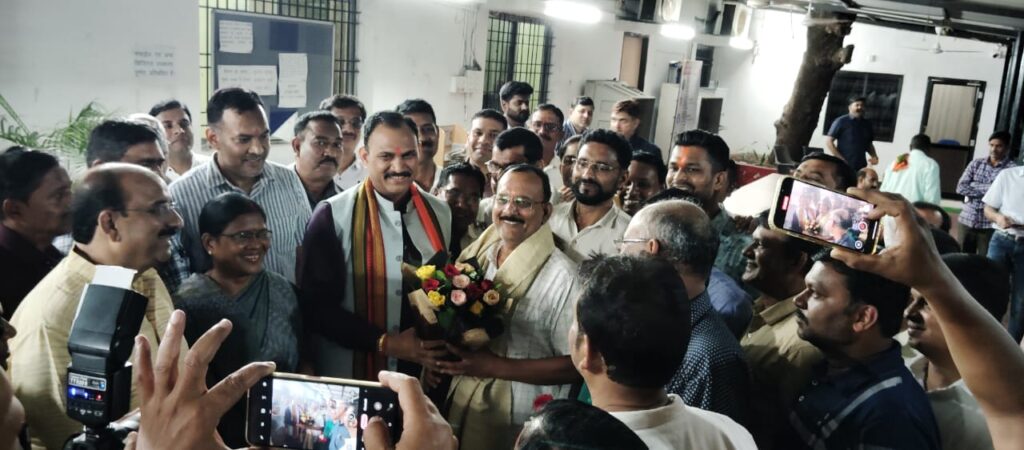 महामंत्री एस पी देवांगन ने बताया की दिनाक 21.08.2025 को नवनिर्वाचित प्रांताध्यक्ष् श्री अनिल पांडेय, संघ के संरक्षक सलाहकार श्री ओ पी शर्मा के नेतृतव् मे माननीय श्री श्याम बिहारी जायस्वाल जी से भेट किये, माननीय स्वास्थ्य मंत्री जी ने नव निर्वाचित प्रान्ताध्यक्ष् को साल ओढहाकर शुभकामना दिये,