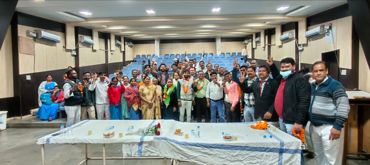 सालिक नौरंगे जिलाध्यक्ष द्वारा कर्मचारियो को एकजूटता बनाये रखने एवं एक साथ मिलकर कार्य करने पर जोर दिया गया एवं एक रहेंगें तो सेफ रहेंगंे, का नारा देते हुए, वर्तमान विभागीय अध्यक्ष के कार्यकाल पूर्ण होने के कारण निर्वाचन के तहत श्री नंदलाल खूटे का नाम मेकाहारा चतुर्थ श्रेणी विभागीय अध्यक्ष हेतु सर्वसम्मित से प्रस्तावित किया गया, बैठक मे उपस्थित सभी कर्मचारियो ने हाथ उठाकर सहमति व्यक्त किया, श्री नंदलाल खुंटे को मेकाहारा का अध्यक्ष निर्वाचित किया गया, एवं इसी प्रकार से संविदा कर्मचारी विभागीय अध्यक्ष श्रीमति अंजनी कोसले , दैनिक वेतन भोगी कर्मचारी का विभागीय अध्यक्ष श्री घनश्याम बंजारे, मल्टीपरपज कर्मचारियों का अध्यक्ष श्री मुकेश वर्मा जी को सर्वसम्मति से चुना गया। सभी नव निर्वाचित पदाधिकारियो को संरक्षक सलाहकार , महामंत्री देवांगन एवं जिलाध्यक्ष नौरंगे द्वारा फूलमाला पहनाकर बधाईयां दिया गया एवं संघ के प्रति निष्ठा पूर्वक कार्य करने की आशा प्रकट किये ।