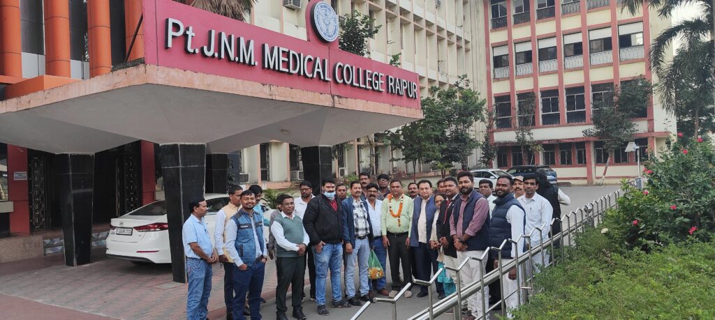ओ.पी.शर्मा राष्ट्रीय उपाध्यक्ष/संरक्षक सलाहकार एवं एस.पी.देवांगन महामंत्री के नेतृत्व मे डाॅ विवेक चौधरी, अधिष्ठाता , पं जवाहर लाल नेहरू स्मृति महाविद्यालय रायपुर एवं डाॅ. संतोष सोनकर संयुक्त संचालक एवं अधीक्षक डाॅ भीमराव अंबेडकर चिकित्सालय रायपुर से भेट कर कालेज एवं हास्पीटल के कर्मचारियो के समस्याओ से अवगत कराया गया एवं संघ द्वारा पूर्व से की गई मांग दैनिक वेतन भोगी के रूप मे कार्यरत स्टाफ नर्सो को उच्च कुशल श्रेणी के अंर्तगत वेतन देने हेतु की गई मांग पर विस्तुत चर्चा की गई जिसमे अधिष्ठाता एवं संयुक्त संचालक द्वारा संघ को अवगत कराया गया कि जानकारी श्रम विभाग को अधूरी होने के कारण कार्यवाही लंबित था लेकिन स्टाफ नर्सो का बी.एस.सी.नर्सिंग की योग्यता को जोड कर कार्यवाही की जा रही है एवं स्वशासी समिति के बैठक मे रखकर कार्यवाही करने का आश्वासन दिया गया।