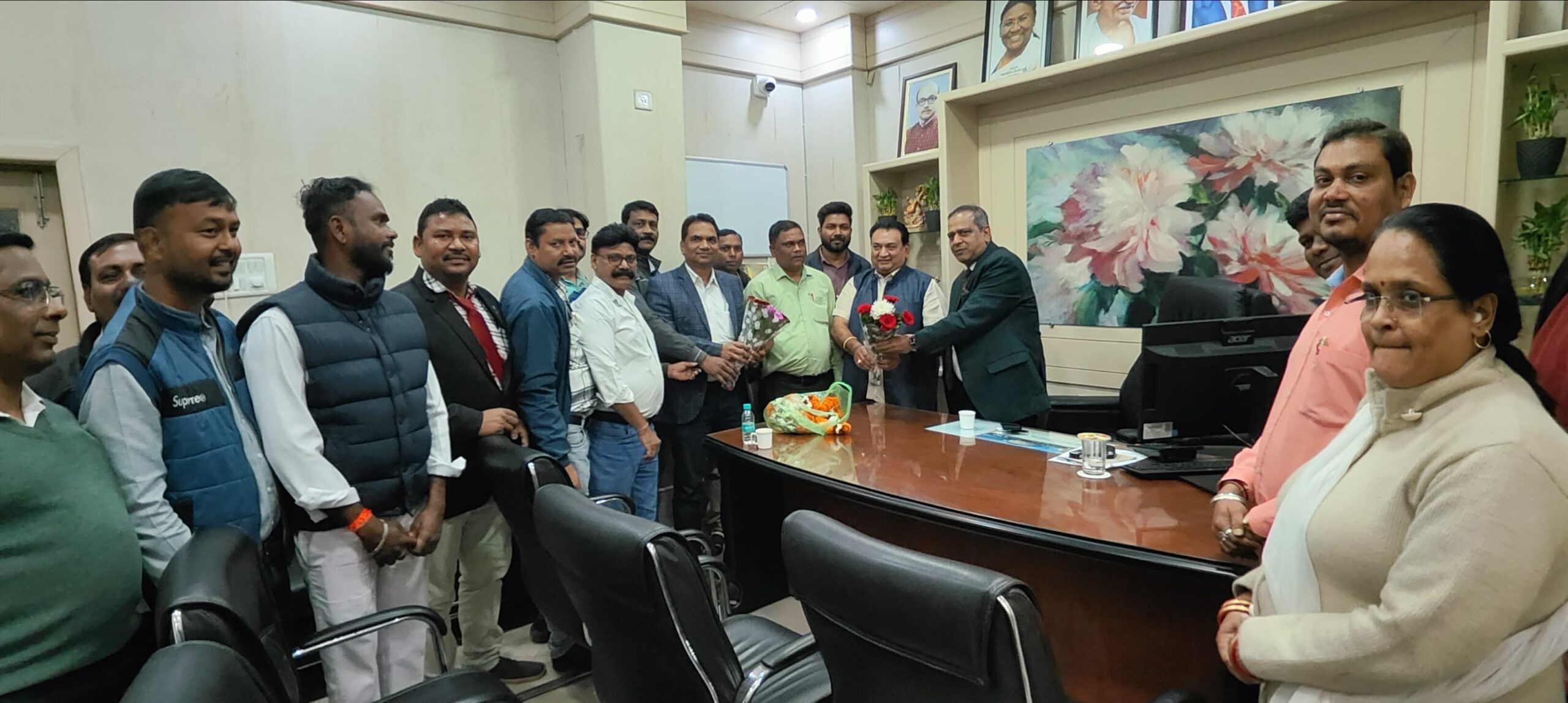 मेकाहारा के नवनिर्वाचित चतुर्थ श्रेणी विभागीय अध्यक्ष नंदलाल खुंटे को अधिष्ठाता एवं संयुक्त संचालक द्वारा पुष्पहार पहनाकार स्वागत किया एवं कर्मचारी हित मे एवं अस्पताल हित मे कार्य करने की सलाह दिया गया ।