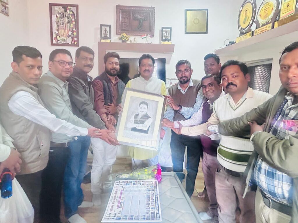 अभनपुर :- छत्तीसगढ़ प्रदेश स्वास्थ्य कर्मचारी संघ के प्रतिनिधि मंडल महामंत्री एस.पी देवांगन एवं जिलाध्यक्ष रायपुर एस आर नौरंगे के नेतृत्व मे अभनपुर विधायक माननीय श्री इंद्र कुमार साहू से सौजन्य भेट मुलाक़ात कर नव वर्ष की बधाई दिया एवं संघ के ब्लॉक शाखा अभनपुर एवं आरंग का वार्षिक कैलेंडर विमोचन विधायक के करकमलो से कराया गया, जिला सचिव रोशन साहू द्वारा विधायक जी का पेंटिंग भेट किया गया,