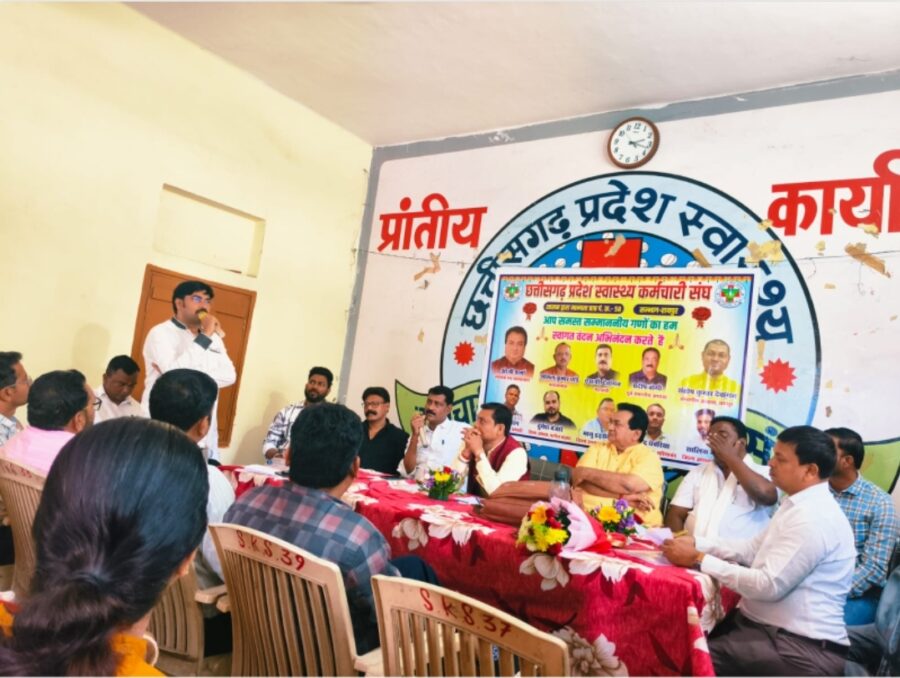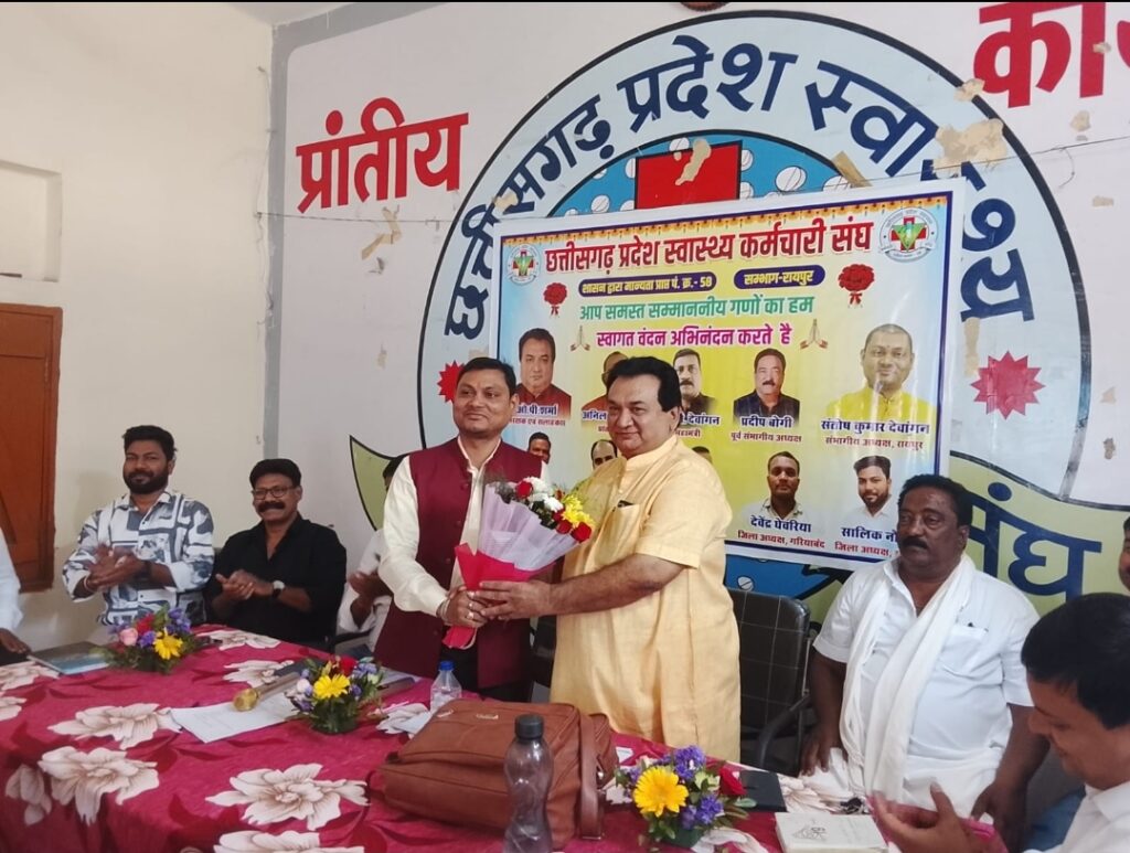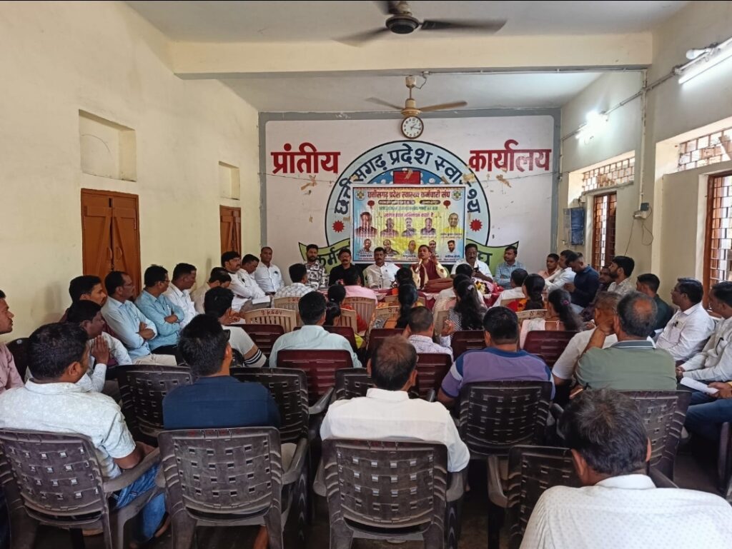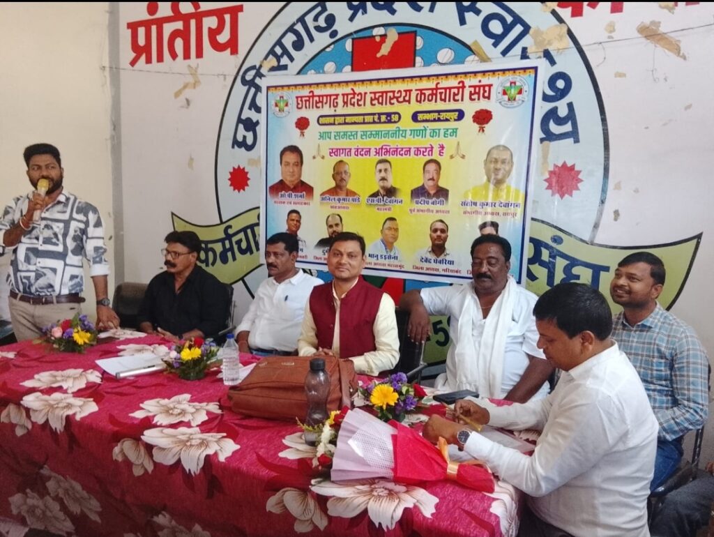 रायपुर :- शासन से मान्यता प्राप्त संगठन छत्तीसगढ़ प्रदेश स्वास्थ्य कर्मचारी संघ के संभाग रायपुर का संभाग स्तरीय बैठक 5 अप्रैल रविवार को प्रांतीय कार्यालय अर्जुन नगर रायपुर मे संभाग अध्यक्ष संतोष देवांगन के अध्यक्षता मे लिया गया
