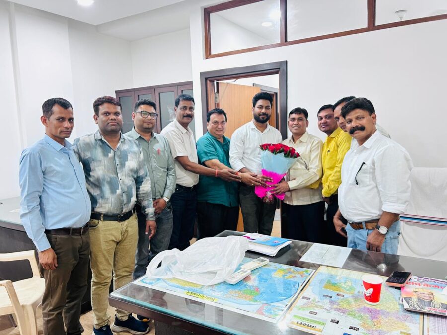 माननीय नवीन मार्कण्डेय जी, पूर्व विधायक, एवं प्रदेश संगठन महामंत्री भाजपा छत्तीसगढ़ से श्री ओ पी शर्मा संरक्षक सलाहकार, एस पी देवांगन महामंत्री, के नेतृत्व में संघ के प्रतिनिधि मंडल द्वारा पुष्प गुच्छ भेट किया गया, स्वास्थ्य संस्थानों में संलग्नीकरण समाप्ति से आम जनता को स्वास्थ्य सेवाओं में हो रही असुविधा एवं समस्त राष्ट्रीय कार्यक्रमों के संचालन में आ रही दिक्कतों से अवगत कराया गया, एवं माननीय से संघ का वार्षिक कैलेंडर का विमोचन कराया गया